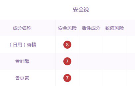 这款西班牙xhekpon颈纹霜中还含有(日用)香精、香叶醇和香豆素,这些都是**性较高的香精成分。其中(日用)香精一般被认为是高风险成分,主要因为香精香料在化妆品中属于最主要的过敏源之一,品种多达数千种,且法规允许其成分不公开。所以敏感肌的小仙女们过敏的原因可能就是这个(日用)香精导致的,其他小仙女在种草的时候也要注意了哦。