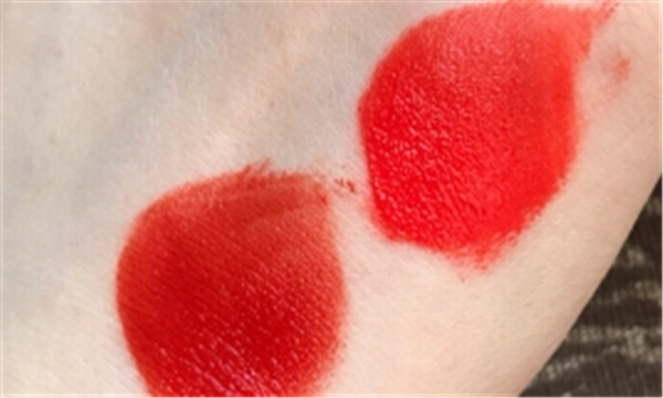 个人觉得401更适合现在的季节,春夏是阳光活泼的季节,唇妆也适合亮丽一些,401颜色更亮。401也适合黄皮肤,以及性格活泼的孩子。薄涂偏淡橘色多一点,抿在纸巾上也是淡橘色。颜色很自然,素颜也可以涂,很显气色。少量点涂再均匀抹开,很快就变哑光质地了,薄涂超适合春夏季节。厚涂很适合带妆涂,很正的橘红色,特别的显白,秋冬涂也一样气场全开。抿在纸巾上跟上唇颜色不一样,偏橘色多一点。涂全唇饱和度很高,虽然是丝绒哑光质地,但上唇不会拔干,还是挺水润的