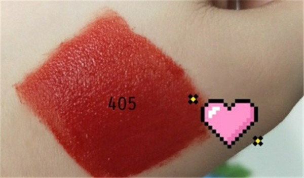 这两只色号都非常火,402是非常正的橘调红色,很活泼的草莓红,405是非常流行的烂番茄色脏橘色,常年断货王。两款颜色差别还挺大的,不能说哪个更好看,主要看哪个颜色更适合自己,402更适合黄皮,405更适合白皮。
