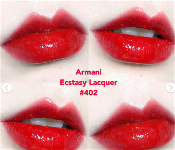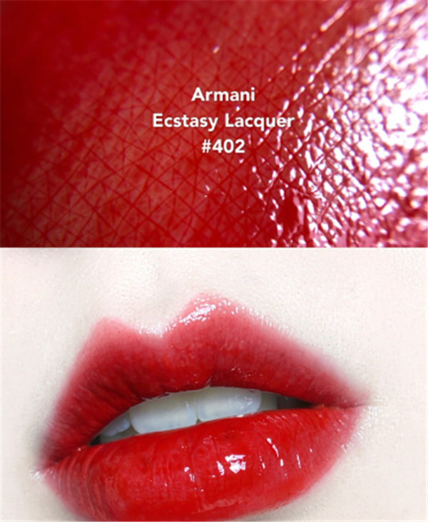 两支颜色不太一样,阿玛尼黑管401是熟透了的樱桃红,阿玛尼黑管402是偏橙色的红色,两支都很显白,看自己更喜欢那个颜色。