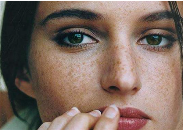 雀斑:多见脸颊、鼻梁位置,斑点小分布密,长期日晒或者先天因素导致雀斑的出现。