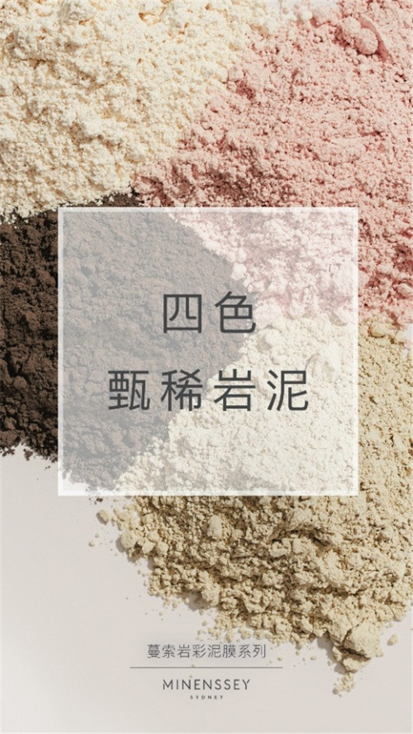 MINENSSEY蔓索由澳大利亚国宝级配方师Cheryl Ross女士创办。Cheryl Ross女士一直倡导“原生美”,长达半个世纪都致力于研发天然原生态护肤品,终于在2017年研制出以澳洲纯净岩彩泥为基底,添加纯天然珍稀原料精华的高质量护肤单品——MINENSSEY蔓索四色焕颜泥彩面膜。