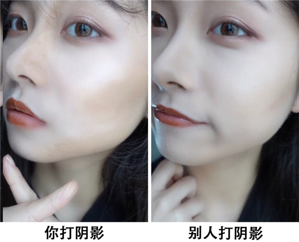 直接在颧骨下方,耳朵到鼻子的位置画一条线晕开,这熟悉的手法,像不像修颧骨时的你?