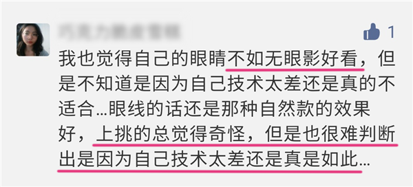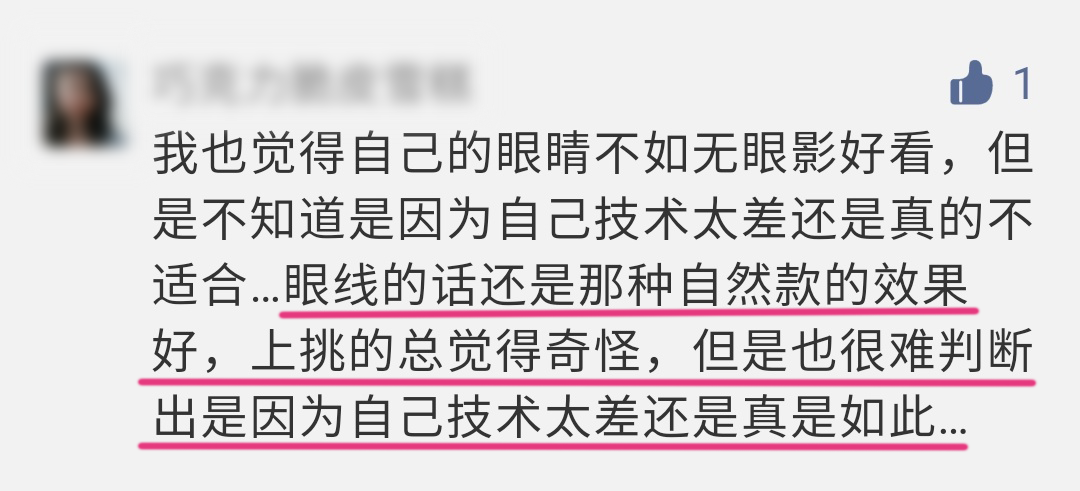 在很多对比里,把横向拉长眼线就叫无效,把 戴美瞳+睫毛刷成太阳花+画卧蚕+泪痣 就叫有效。