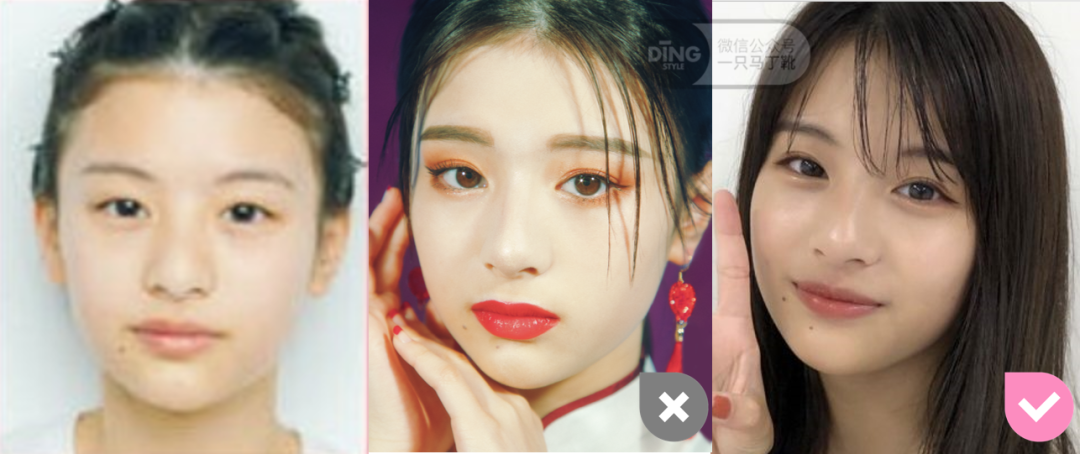 变化是挺大,但不如最右的淡妆保留她的幼态特色。