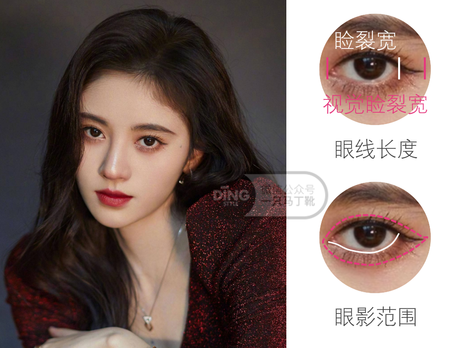 不如保留眼型略上挑、中庭稍长的特点(只要不去过分加深山根阴影就好),展现成熟清丽的气质: