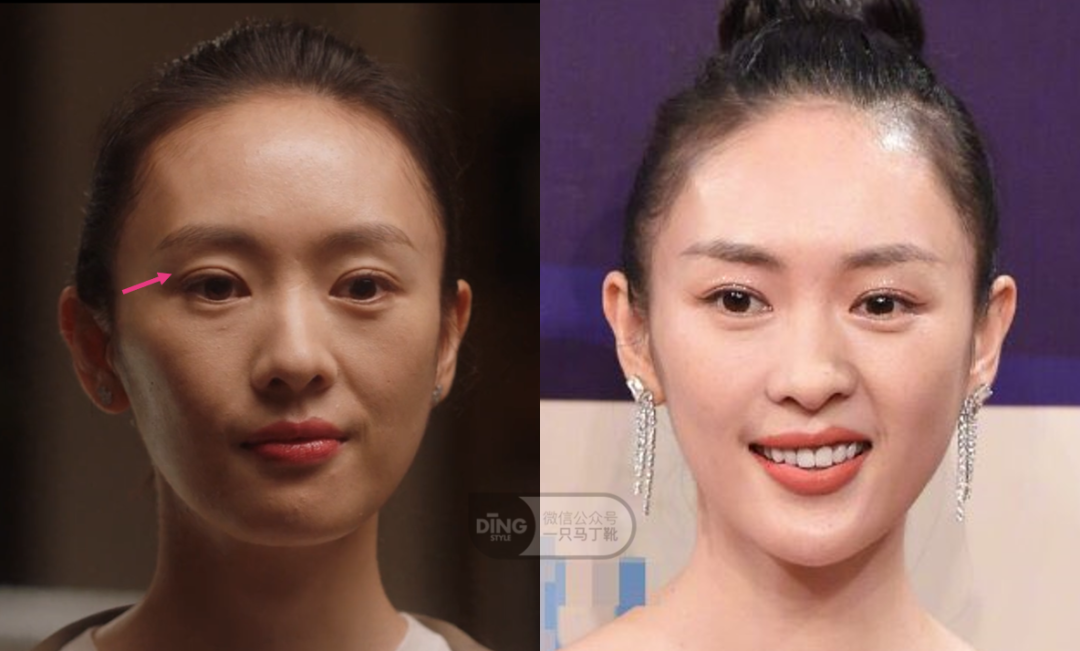 她的妆容大都发挥尖线条特色,不会改成大双眼皮,所以妆前妆后变化不大。