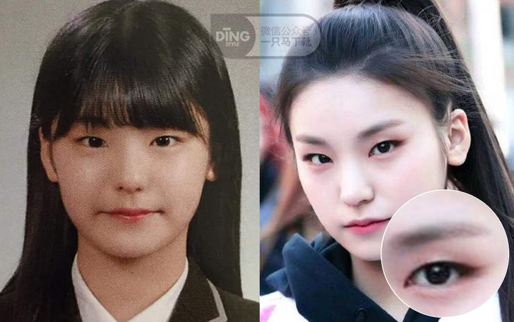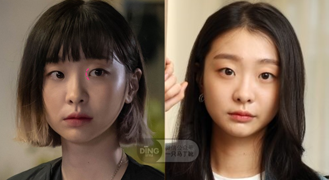 或者是眼型类似于金多美这种,内眼角很钝,贴成宽双眼皮也会很不自然: