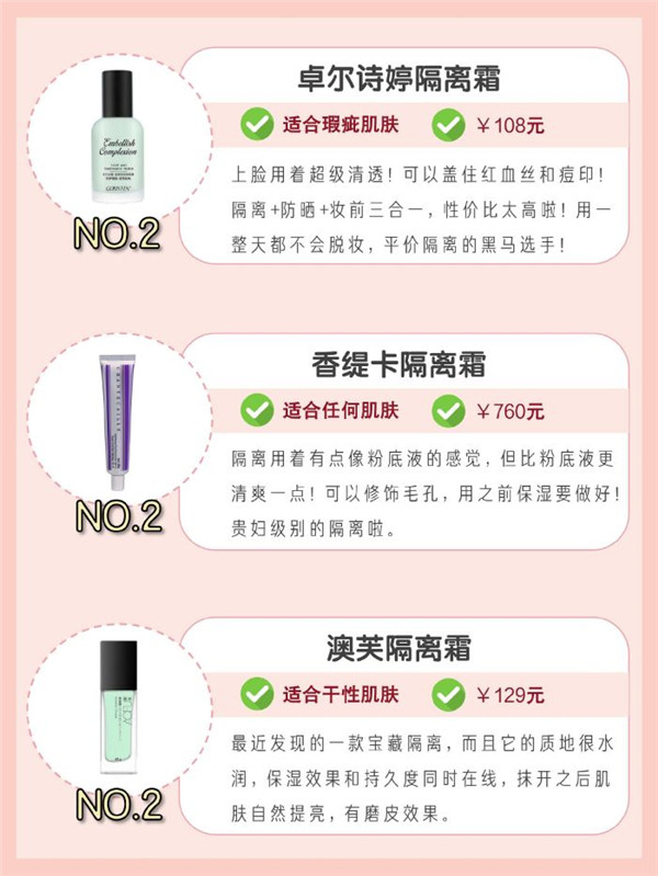 持久不脱妆隔离霜,性价比高的隔离霜排名 2021-11-19 23:16:23 美妆 320℃ 0 如果底妆拉胯,整个妆容会显得不好看。想要底妆自然姐妹隔离霜要用啊!别告诉我你还没用过! 那怪不得你的底妆会脱妆出油呢! 好的隔离霜可以控油遮暇提亮~ 根据自己肤质情况进行选择 给你们整理了一些热门隔离霜~ 持久不脱妆隔离霜,性价比高的隔离霜排名 上一篇:盘点平价好用的5款爆款隔离霜,性价比高的隔离霜排名 下一篇:这5款性价比高的大牌隔离霜排名 相关推荐 儿童应该用多少倍防晒儿童能用防晒霜吗,儿童使用防晒霜的注意事项,适合的倍数与使用建议 资生堂时光琉璃御藏集效奢养霜怎么样好用吗,资生堂时光琉璃御藏集效奢养霜深度评测,真实使用体验告诉你是否值得入手 贵妇圈疯传!日本本土CPB水磨精华3大奇效+湿敷秘诀 法国天然护肤教主NUXE欧树:揭秘全球明星追捧的奢华秘密 评论留言 暂时没有留言! 我要留言 昵称:* 邮箱:* 网址: 验证码* 内容: 取消回复 ◎欢迎参与讨论,请在这里发表您的看法、交流您的观点。