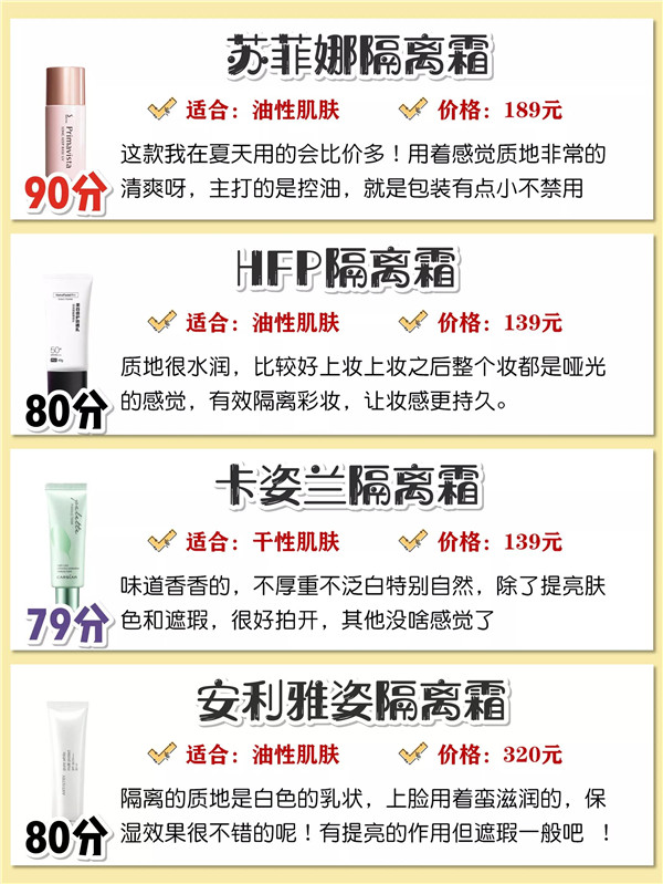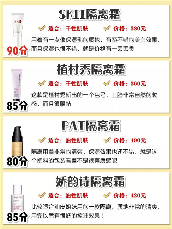 这些平价隔离霜你用过吗,性价比高的隔离霜排名 2021-11-19 23:17:30 美妆 361℃ 0 干皮隔离油皮隔离保湿隔离好用隔离。隔离的重要性姐妹不用我多说。尤其是化妆后容易脱妆卡粉的姐妹。化妆前的隔离很重要~。如果你不知道如何选择冬天的隔离。来看看啊。 上一篇:推荐这3款性价比高的隔离霜 下一篇:正确的洗脸护肤步骤 相关推荐 儿童应该用多少倍防晒儿童能用防晒霜吗,儿童使用防晒霜的注意事项,适合的倍数与使用建议 资生堂时光琉璃御藏集效奢养霜怎么样好用吗,资生堂时光琉璃御藏集效奢养霜深度评测,真实使用体验告诉你是否值得入手 贵妇圈疯传!日本本土CPB水磨精华3大奇效+湿敷秘诀 法国天然护肤教主NUXE欧树:揭秘全球明星追捧的奢华秘密 评论留言 暂时没有留言! 我要留言 昵称:* 邮箱:* 网址: 验证码* 内容: 取消回复 ◎欢迎参与讨论,请在这里发表您的看法、交流您的观点。