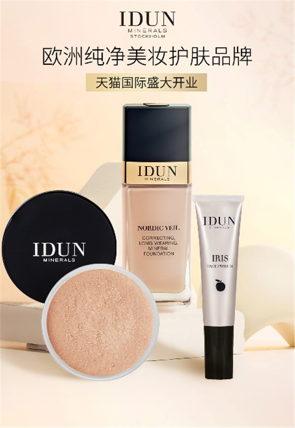 2021年11月25日,瑞典知名纯净矿物美妆品牌IDUN Minerals于天猫国际盛大开业,力求为中国消费者带来源于北欧的纯净高质量美妆护肤体验,产品线包含彩妆、护肤以及头发护理。