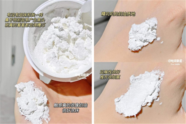 这款泥膜的成分不仅优秀,质地也如其名软绵细腻又超级Q弹,用自带的小白挖勺将泥膜涂在清洁后的肌肤上,很快就能延展开,涂上后不拔干,也没有紧绷感,我一般会在鼻头和鼻翼两侧厚涂,清洁效果会更棒,大概过15分钟左右用清水就能很快洗净,干干净净、白**嫩的肌肤,谁会不爱呢!