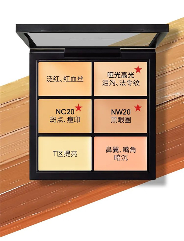 MAC六色遮瑕盘#,彩妆师专研六色,一盘解决全脸瑕疵 。高遮瑕隐匿瑕疵,轻妆感不暗沉不假面。清透遮瑕不闷不卡,精准隐匿细微瑕疵,打造自然无瑕哑光效果,顺滑质地极易延展,让底妆每个角落都无瑕!宝藏好物 一盘全效多用,精准对抗各类瑕疵,全方位自然无瑕;加成维生素E,卓越抗氧不暗沉,妆容清透匀亮,宛若自带美颜!