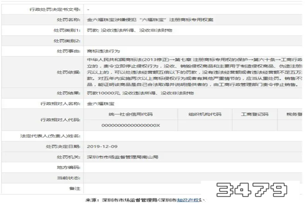 PS:金六福珠宝曾经涉嫌侵犯“六福珠宝”注册商标,被被深圳市市场监督管理局南山局罚款10000元、没收违法所得、没收非法财物。建议谨慎购买该品牌的珠宝。如图所示: