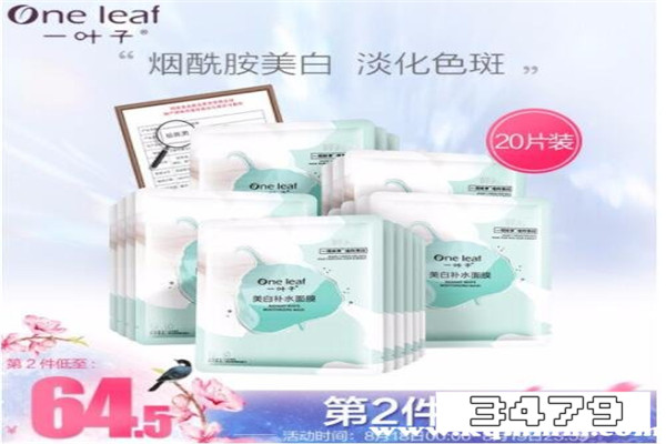 3、一叶子 美白补水面膜 129元/20片