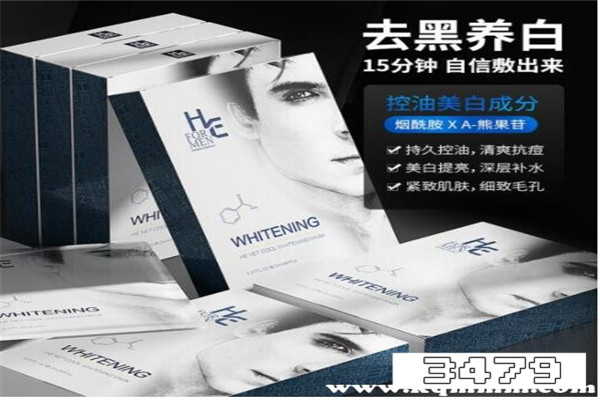 3、赫恩男士美白控油补水面膜 参考价69元/21片