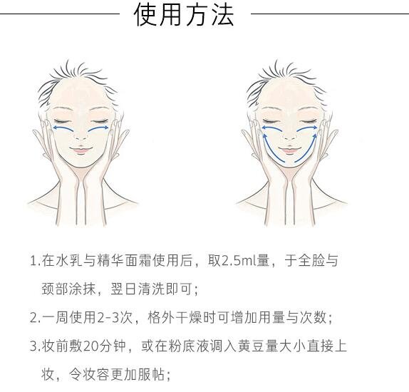 因为属于睡眠面膜,适合在我们入睡前敷,可以敷完后不清洗直接入睡,第二天早上起来用清水洗净即可。