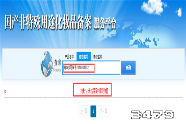 2、然而在国产药品监督管理局中并无其备案信息,显示“抱歉,未检索到相关数据”。如图所示: