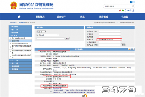 瑞斯美面膜还是比较安全的,这个牌子并不是三无产品,有在国家药品监督管理局备案,其批准文号是“国妆备进字J20187280”。备案信息如图所示: