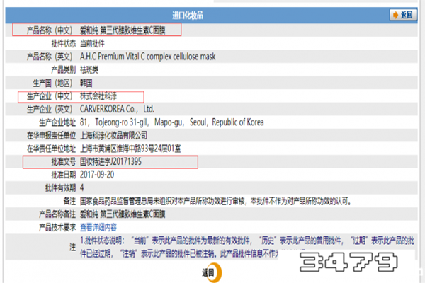3、从安全性分析,这款面膜相对正规,并不是三无产品,有生产厂家、生产地址以及其批准文号。详细如图中画红框地方所示: