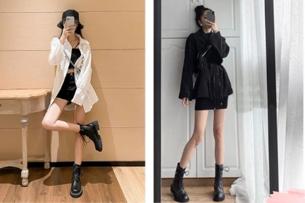 骑士靴的独特之处在于靴筒的硬朗,能修饰出完美的腿部曲线,骑士靴会让整个腿部看起来十分纤细还能够增添不少的帅气感。骑士靴相比短靴的靴筒更高,许多骑士靴在膝盖处有尖口的设计,能延伸腿部线条。短靴露出肌肤穿着帅气又迷人,十分展现身材,两种靴子都很有气质,显身材。