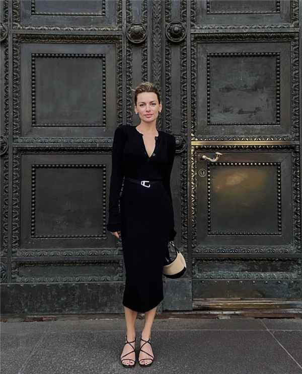 下班有一个约,但是回家换服装又没有太多的时间,这时候一件式的洋装正能派上用场。黑色是基本的经典色系,不怕出错又是能体现优雅的色调,针织罗纹的弹性面料更是赋予身体一种性感的束缚感,却又不会给人多余的想像。而法国女人向来都擅长将合身又简约的剪裁,融入不同的场合之中。