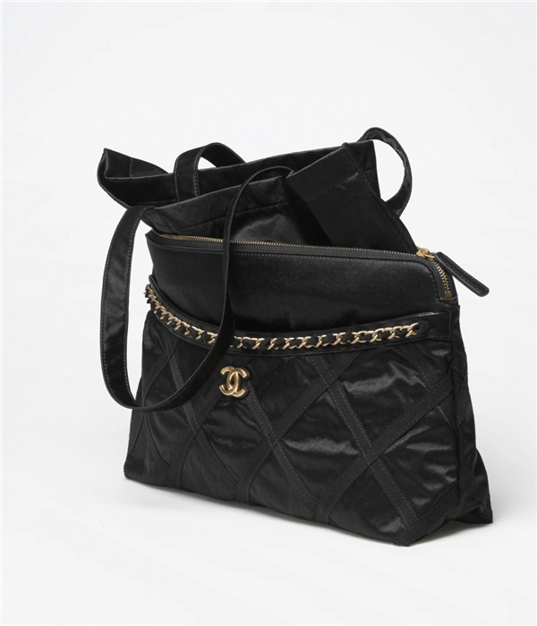 2022春夏系列,不仅有大容量袋身增加实用性,流畅曲线与轻盈的轮廓,唤起女性的优雅象徵。Maxi Shopping Bag,提把U字形设计结合交织金属的链条,恰如其分展现复古高雅之外,全黑的绗缝菱格纹更让人不自觉时髦了起来。HK$38,500