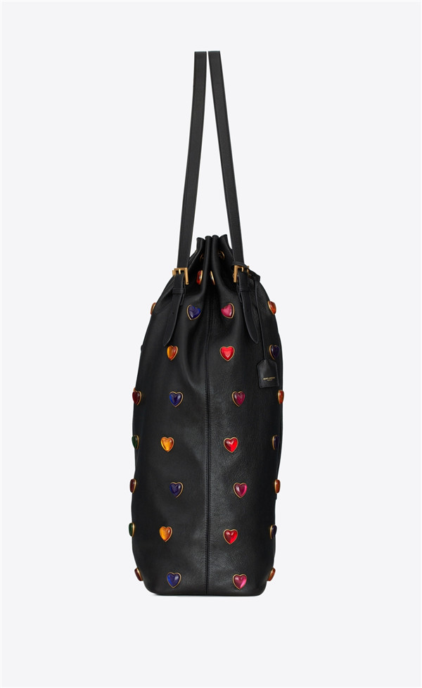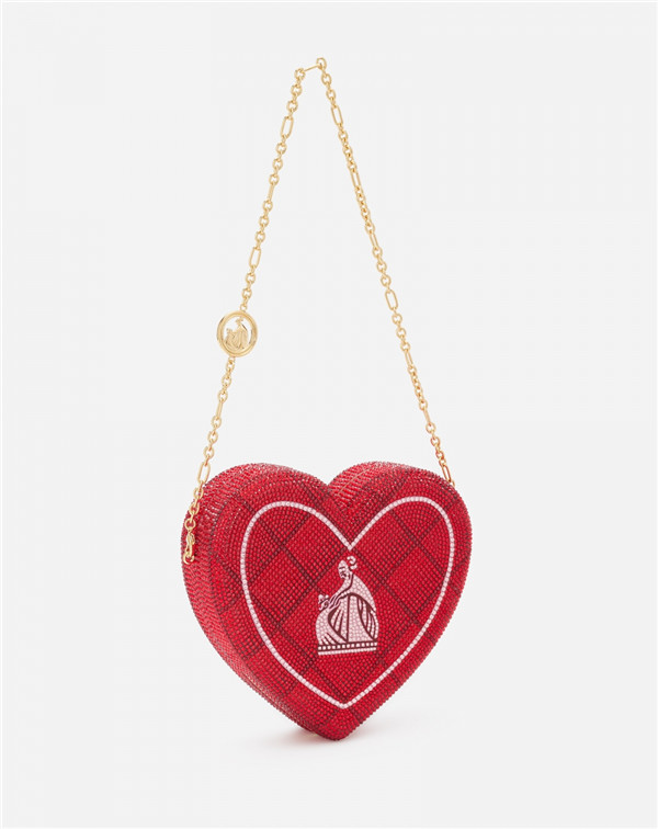 虽然没有爱心形的轮廓造型,布满复古的心形铆钉元素也别有一番情调。此款Riva Large Bucket Bag以黑色小羊皮製成,内部容量配有一个主隔间,揹在身上而手袋的多彩爱心持续绽放光芒,焦点也不输给拥有爱心形轮廓的设计吧?HK$37,000