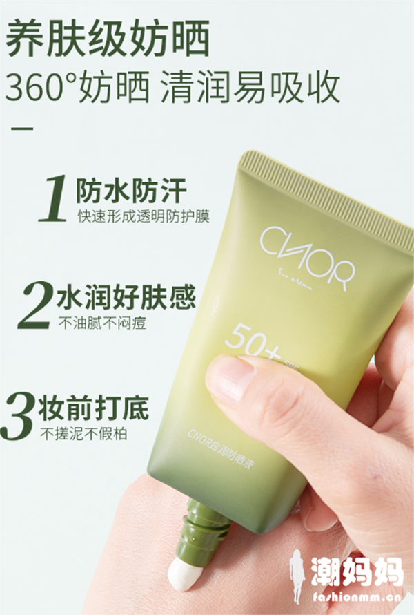 CNOR启润防晒霜它的整个质地超级滋润,像冰淇淋一样很容易推开,抹开成膜很快,清清爽爽的不黏腻。记得我军训那会晒得连我妈都不认识,好在我有这款秘密武器,可以满足追求素颜好皮的姐妹们,上妆真的不假白很自然,暴晒下不仅没晒黑也没晒伤就让我够惊喜了。