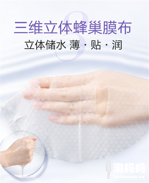高姿的蜂巢水库补水面膜这个是我唯一觉得补水保湿效果很好的面膜,膜布就是那种三维立体的蜂巢设计,上脸就像吸盘一样好服帖,敷前脸上红红的地方敷完之后也都不见了,敷完之后脸上滑滑嫩嫩的不粘腻,反正到底有多好用,大家买回来试试就知道啦。这款面膜敏感肌使用起来也没有任何不适感,油皮痘痘肌和干皮的姐妹们都适用