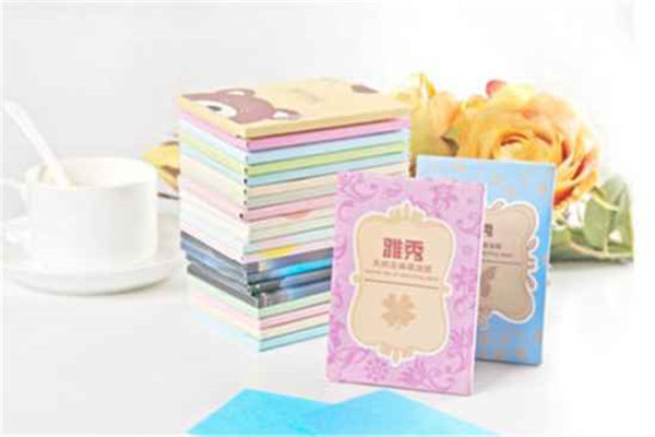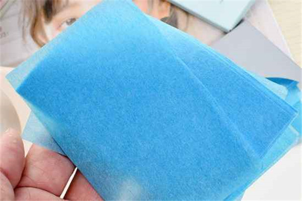 吸油纸是有两面的一面光泽感,一面哑光感,先用哑光面吸一遍脸上的油光,再用管光泽面过一遍。就可以吸走脸上油光啦。