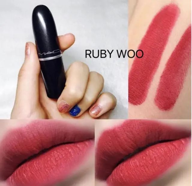 Mac口红经典色号rubywoo这个颜色是非常显白的颜色,它比999颜色稍微艳丽一些,但是非常的显气质,喜欢mac口红的美眉,这个颜色几乎是人手必备的一支!雾面妆感,颜色比较持久。觉得有点干的美眉可以做好保湿打底。