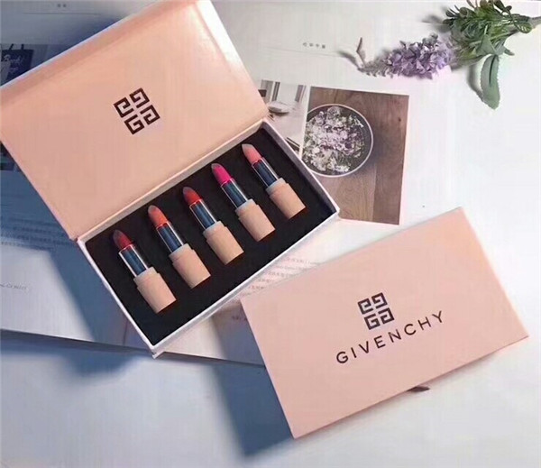 5.纪梵希(Givenchy):唇膏管身由黑色压纹小羊皮包裹,手感和视觉感强烈,银质金属、管身简洁利落,高质感、浓厚色彩张力、半哑光,高效保湿、丰润滋养、轻盈持久。比如纪梵希小羊皮。