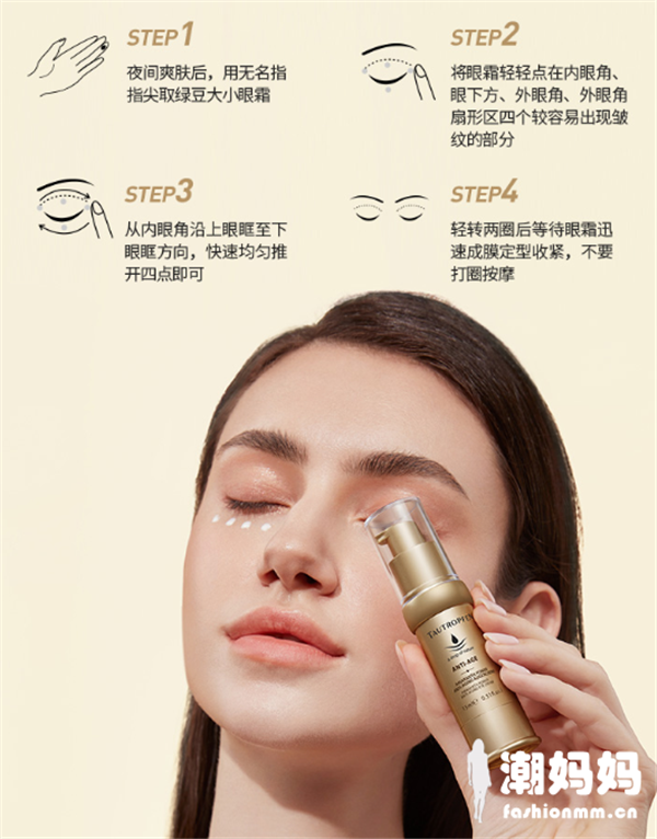 天露芬这款眼霜是啫喱霜状的,按照客服示范的那样,取黄豆大小分开涂在眼周,不用**让其自然吸收。眼霜不会觉得过于厚重黏腻,很好吸收也很好化开,就是抹的时候不能来回搓会搓泥,用后效果太猛吓得去了一下成分,才发现里面的用料好扎实舍得,不仅可以减淡眼周纹补充营养,还能抗衰老并且抵御眼部老化。