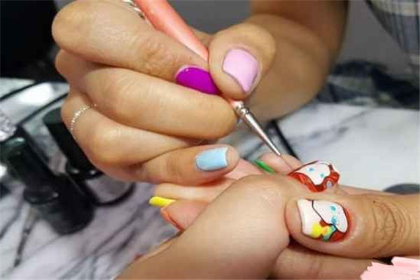 其实是可以的,但是新手不推荐。甲油胶比较稀,彩绘胶可以一笔画过的线条,甲油胶需要描很多次,次数越多线条越不整齐。如果你自己是用指甲油来做彩绘,指甲油的质地本身就是比较稀的。在手绘美甲图案的过程中就会容易四处流动,非常的不好控制,容易沾染到其他图形的部分,还有一点就是画出来的图案是有很明显的痕迹。彩绘胶上色要比指甲油快。这是因为彩绘胶的颜色比较实,一笔就能将线条画得均匀而且细致,可以减少反复的上色。而指甲油通常是要涂两到三层才可以上色,用指甲油来勾画图形线条的话,一笔没有上色的话,就需要补第二笔,补的笔数要是越多的话,手就会越容易抖,这会出现线条不一,不均匀的情况,画出来的图案也就没有彩绘胶画出来的精致且好看了。
