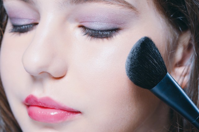 腮红打在鼻翼两边,往太阳穴的区域慢慢晕染开,这样能让眼袋看上去没那么下垂,气色红润,反而让大家忽视了眼袋的存在。在办公室或者聚餐的时候,都不要坐灯光直射的区域,否则会让眼袋毫无余地的暴露出来,化妆的效果再好也遮不住。
