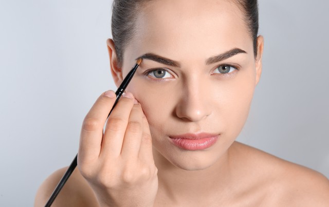 要说修眉是化妆的基础绝对不为过,适合自己的眉型要符合脸部比例,首先要定出眉头、眉峰和眉尾位置,此时要照镜子看看两边定出的三点位置是否一致,否则容易画出高低眉,修眉时要从最外侧杂毛开始修起,由外往内修才不容易失手,边修要边将掉落的杂毛用大刷子刷掉,避免影响视线。