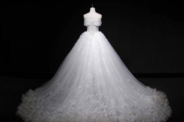 3、公主型婚纱:这类款式看起来华丽又活泼,适合较小和身材适中的新娘。