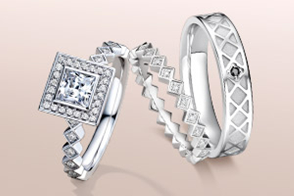 ②铂金。DR钻戒戒托材质也有PT950的,PT950是指含铂量为95%的金属。具有纯度高、不褪色、牢固性好的特点。尤其是铂金具有天然纯净的白色这个特点,与纯净的爱情相契合,因此还被赋予了“爱情金属”的美称。DR钻戒的WITH YOU系列铂金钻戒,以铂金镶嵌高品质的钻石,呈现出灵动闪耀之美。
