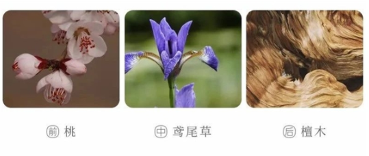 “一段被桃花染上绯红色泽的檀木。汁液感充沛的乌榄树叶,带来引人入胜的开场;桃花、玫瑰与鸢尾极尽娇柔粉润,勾起檀木深藏的温暖,花与木相映成趣,刚柔并济;白麝香姗姗来迟,献上萦绕不散的柔和余韵。”