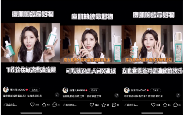 人气主播张沫凡在小红书中力荐的魔力肌源清痘净颜系列