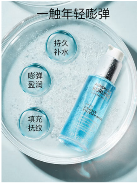 安娜柏林运用特有的专业萃取方法,将二者的优点集中在这一款精华上,在加上黑森林活泉水中多种矿物质的加持,使双层玻尿酸精华拥有卓越的功效,让肌肤持续补水的同时,还能做到嘭弹盈润+填充抚纹。