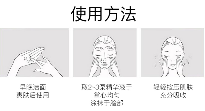 更纯净、更光泽、更细腻,易于肌肤修复,所有肤质都适用,双层玻尿酸精华的天然有机植物成分安全有效,一句话,孕妇都可以安心使用!涂抹的方式也特别简单,只需3步轻轻松松解决皮肤缺水问题。