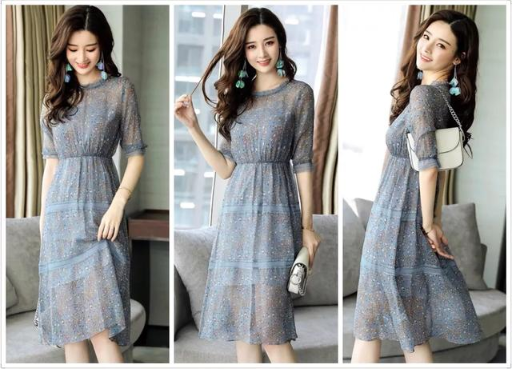 五分袖真丝连衣裙: