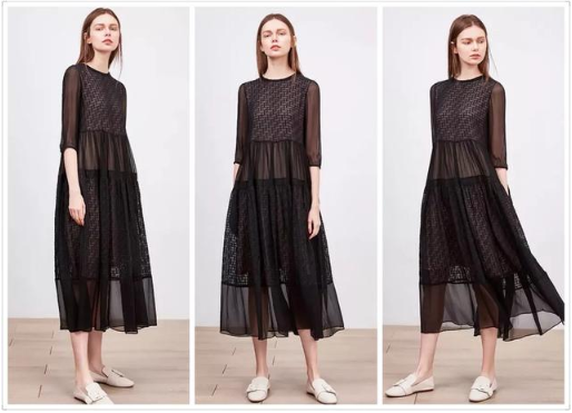 黑色是非常神秘的颜色,尤其是这款层次分明的连衣裙,同样是若隐若现的设计,但是黑色却更加神秘性感。参考价1000元。