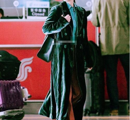 深咖色的长裤,搭上墨绿色的短大衣,薄荷绿的打底衫,色彩的和谐度很高。经典又时尚。