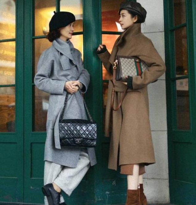第三适用一些搭配小技巧,例如帽子手提包。三木妈妈的帽子,手提包,还有黑色的鞋子颜色都是一致的,全部是黑色。因为灰色比较暗,所以一身不能超过三个颜色,要不然灰色就好像被埋没了一样。