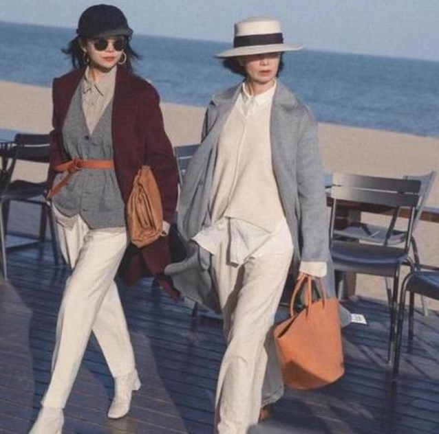 第五灰色的穿搭好像就离不开白色和橘红色,这个图片上的灰色还是用白色凄凉的灰色,这就是法式穿搭的特点。三木妈妈的这种传达非常显示优雅知性,端庄大方,怎么也看不出像一个50岁年龄的女人。