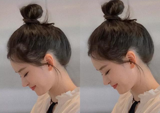 4、丸子头,把高马尾扎成一个甜甜的丸子头也是很青春活力的,而且头发油的话,碎发会更容易扎起来。发型又不挑人,小个子扎起丸子头显高又显小,可爱的丸子头能让你瞬间就是元气满满的少女