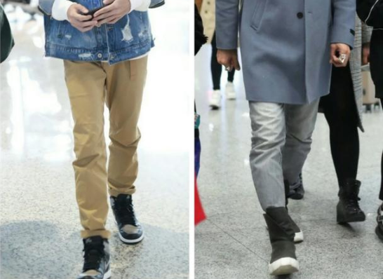 看看邹市明的这一身也是挺好,只有162的邹市明按理来说不适合选高帮鞋来搭配,但是不得不说他挺会搭配的,所以高帮鞋搭配起来显得也比较协调,没有给人以腿短的既视感。主要是裤脚处理的好,同时裤子的版型选择适合,裤子长度刚好所以裤脚不堆积,与小巧的板鞋搭配起来可以很好的衔接在一起,另外修身小脚的裤子版型让腿部更显得修长起来,所以腿部并没有被“截”得很短。